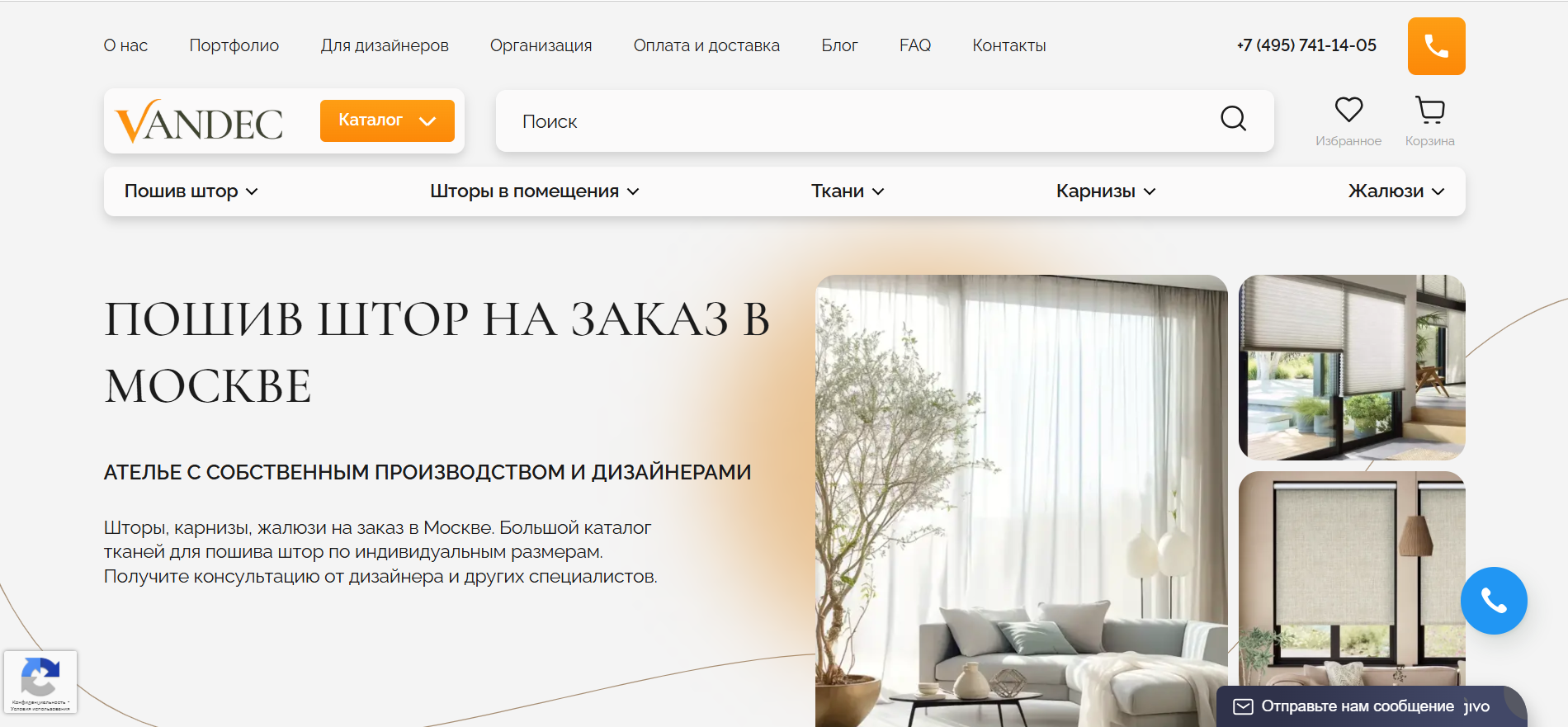 Разработка сайта для магазина штор и жалюзи VANDEC