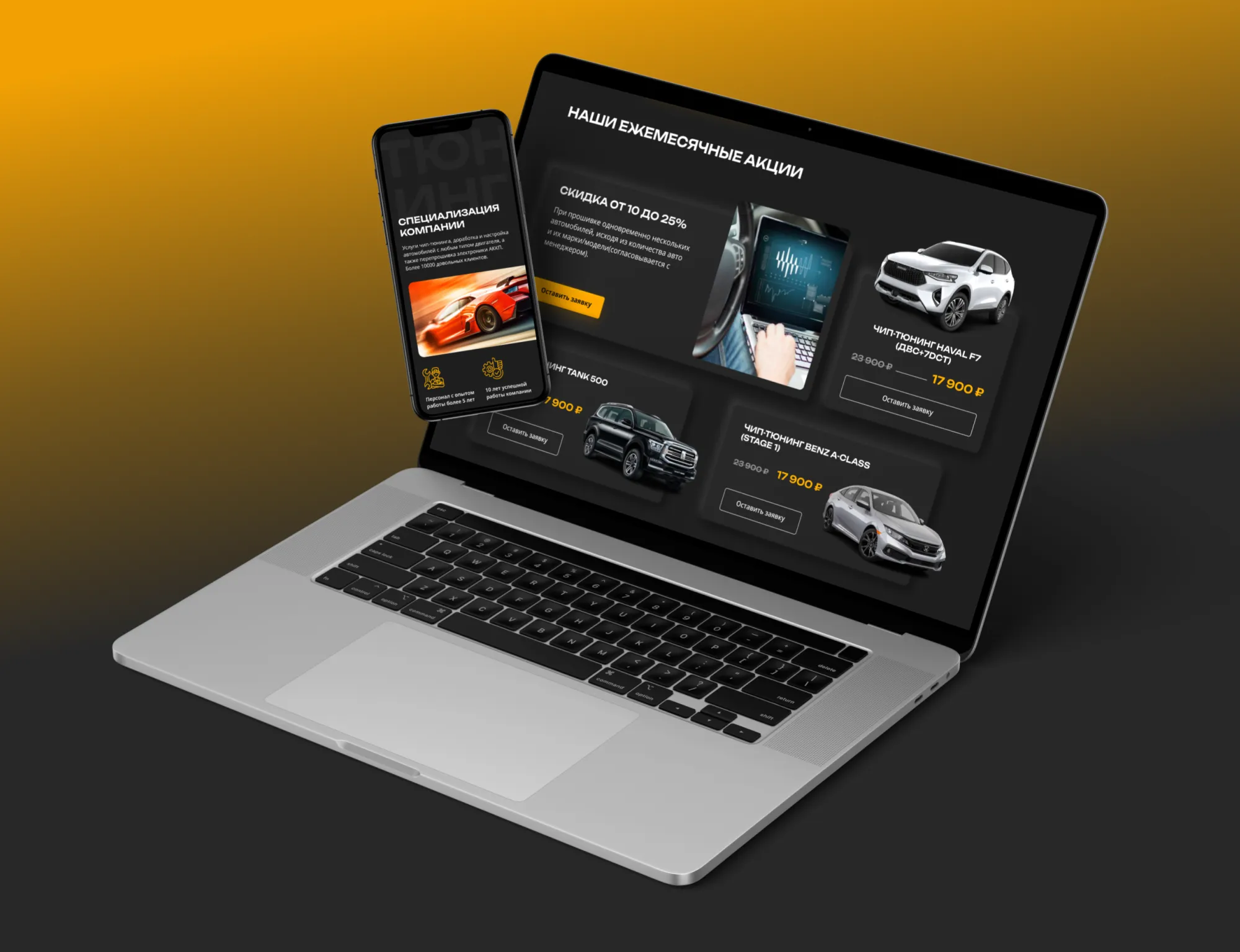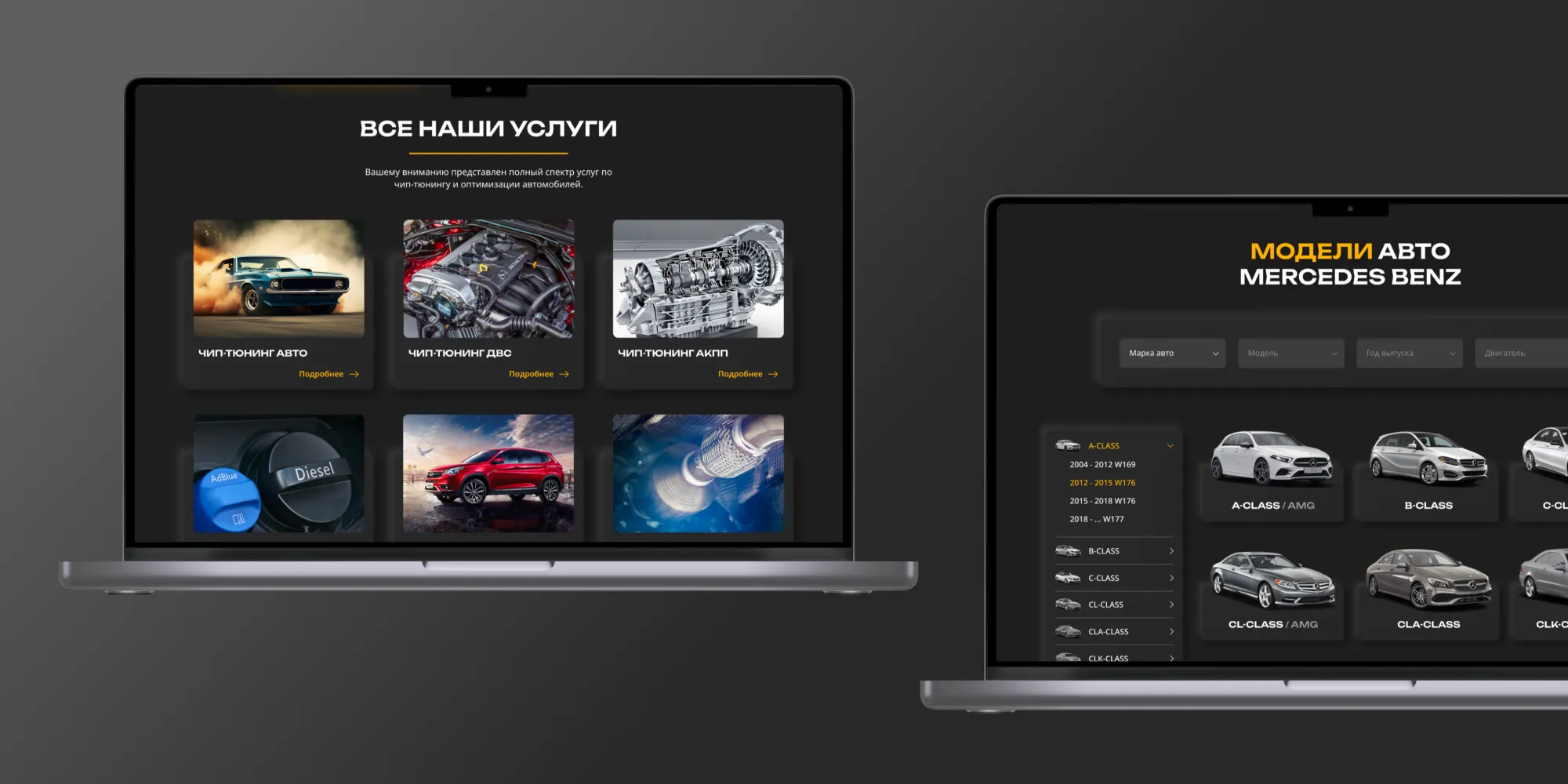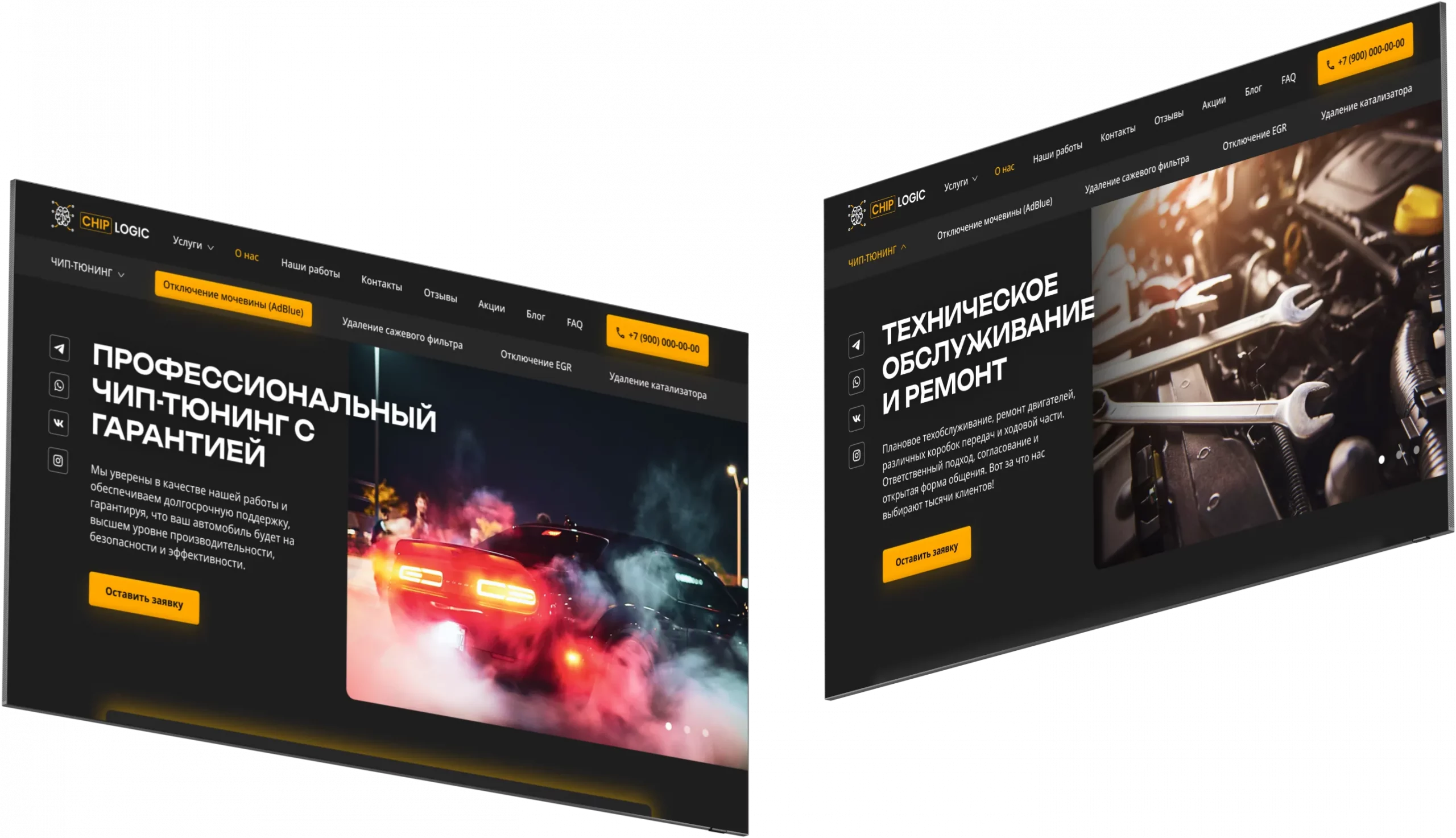 Создание веб-сайта для сервиса чип тюнинга "Chip Logic". Компания специализируется на улучшении производительности автомобилей, охватывая более 8 тысяч моделей